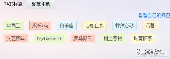 而与微信有一脉相承意义的QQ,想被找出来更是轻而易举的事情。作为早期网民最主要的社交工具,QQ空间不知道记录了多少人在中二时期留下的黑历史。可能有人会想说:QQ你随意扒,反正我都把QQ空间关了。真的没关系吗?QQ里有些记录可能连你自己的忘记,但是被扒出来的话,信息含量也不低。就拿早些时候的一个功能来说:好友印象和个人标签。