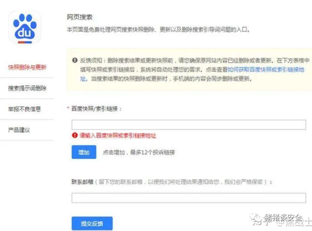 万一找到了自己的黑历史,除了在平台内删除记录,还可以找百度服务中心取消收录,减少曝光入口。