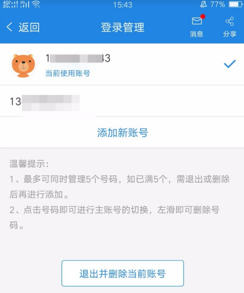 然后通过手机验证登录我们的账号,也可以通过已添加的号码,切换登录。如下图所示
