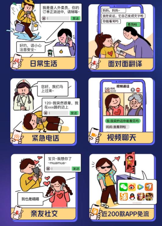 “畅听王卡”每月29元,提供无障碍通话/视频、面对面翻译、近200款App免流,适用人群:听力障碍、言语障碍、耳背耳鸣。