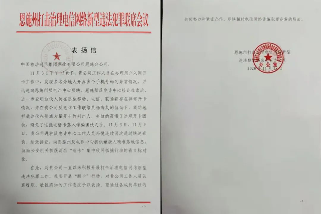 日前,几名年轻人突然来到湖北省恩施州一家中国移动营业厅办理手机卡,移动人凭借超强的工作敏感度,进行警惕核查,发现疑点后立刻向当地反电诈中心提供线索,并协助公安机关成功抓获6名犯罪嫌疑人,成功打掉一个网络诈骗团伙……