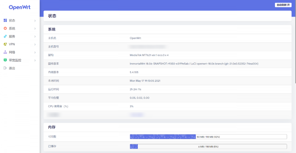 托尼先上一张后台管理界面的图,差友们能看到这个界面从状态到服务到网络再到带宽监控,一台路由器该有的功能几乎都有,俨然一个小操作系统。