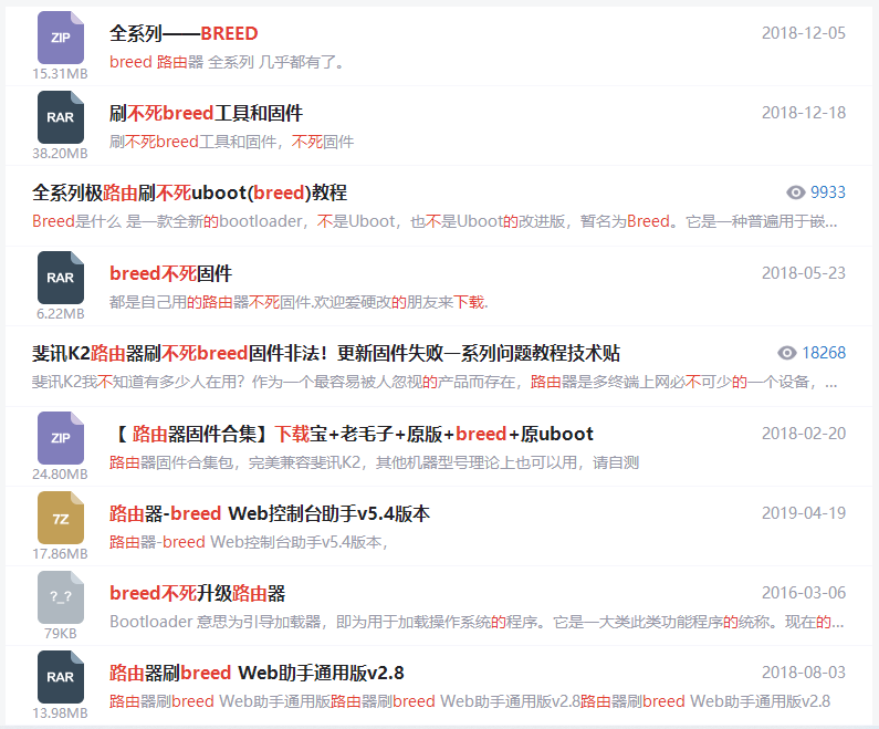 找到固件之后呢,你还得先给路由器刷好 breed,这个 breed 相当于我们手机刷机时的 Recovery,路由器刷了它,在刷固件时就不用担心会变砖。