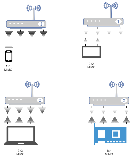 1×1MIMO:此类设备具有一个天线,只能连接到一个无线流。