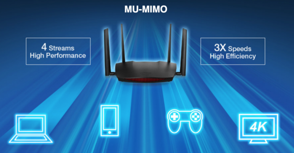 其实与其说高端路由器的天线多,还不如说是它们采用了一项新技术——「MU-MIMO技术」(能大幅提升单用户的传输速率)。