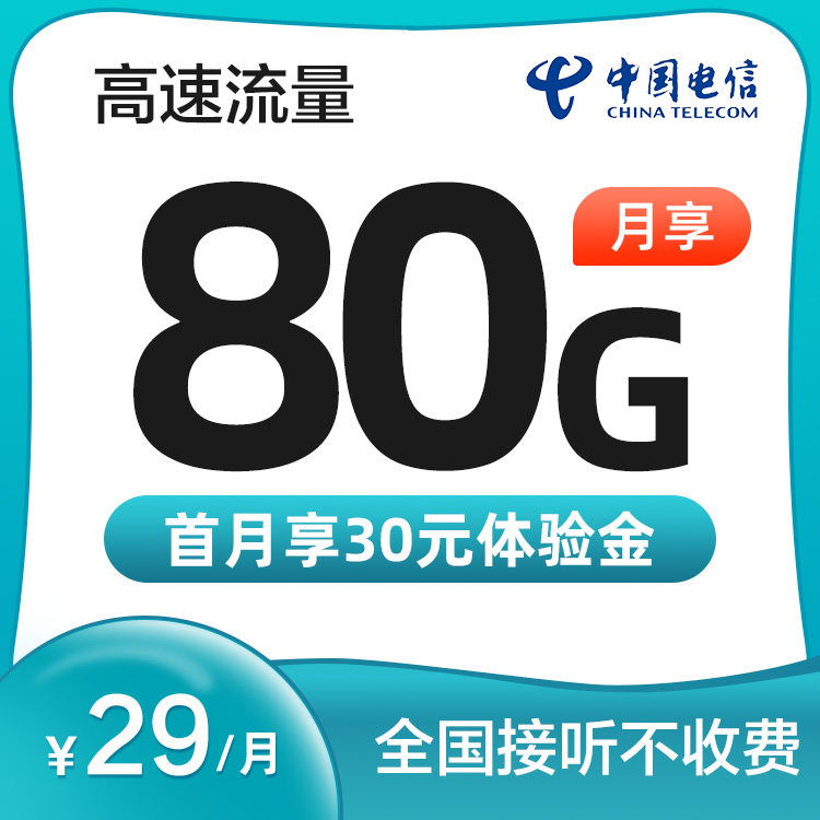 电信星卡29元80G80G高速流量,全国接听免费80GB流量丨0分钟语音首充有礼正品保障¥29/月起立即申请
