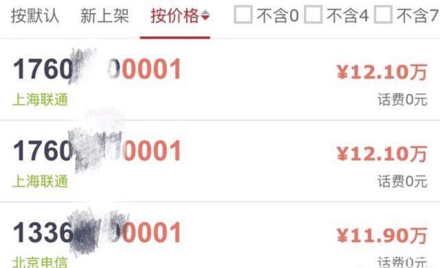 可能想象不到,0001这个手机尾号,最高值12.1万元;而最便宜的价格在500元。0001是不是靓号呢?从这个角度来看,它属于靓号。