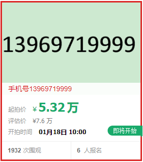 尾号带“9999”的手机号值多少钱?青岛市南法院挂出起拍价