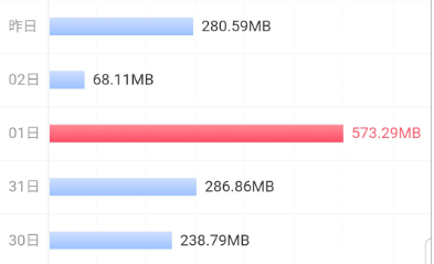 可以给你们看一下好奇君每天的流量使用情况,7月30日到8月3日,5天一共使用了1.5G流量,这还算是比较少的日子。