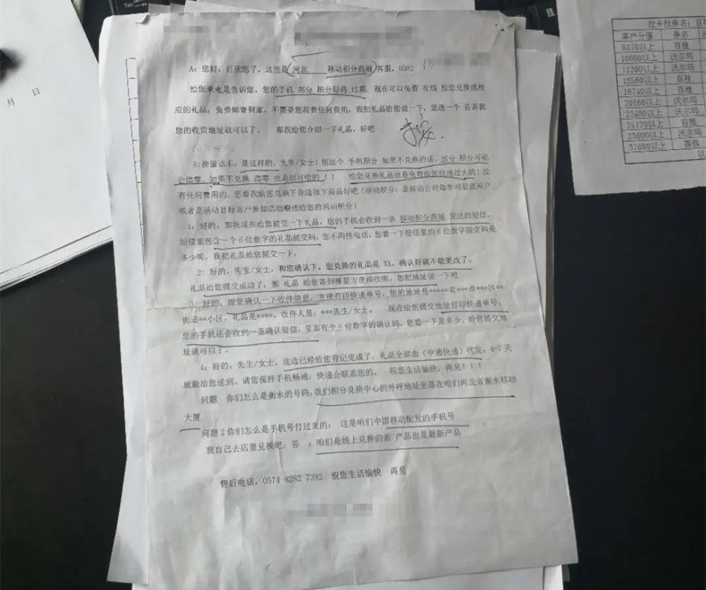 两名犯罪嫌疑人供述,其网购大量移动客户信息,招聘多人冒充移动客服给客户打电话,待客户同意后,索要积分手机验证码,将积分兑换成某商超的代金券,然后再转换成现金提现。两人通过发展下线诈骗,已经非法获利30万余元。枣强白某的“工作处”,就是其中一个窝点。目前,案件正在进一步办理中。