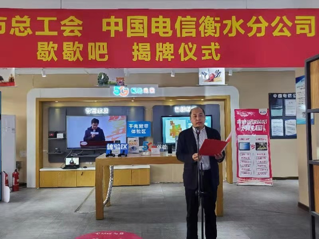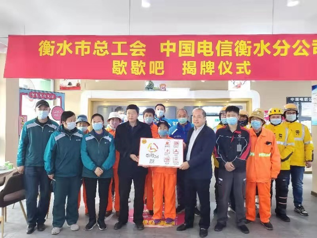 11月12日上午,衡水市总工会与中国电信衡水分公司联合举行衡水市电信公司歇歇吧揭牌仪式,这标志着衡水电信全市31个自由营业厅的“歇歇吧”开始向向环卫工人、快递小哥和外卖小哥等基层户外劳动者开放,提供热水、手机充电、卫生间、歇脚和热饭等服务。