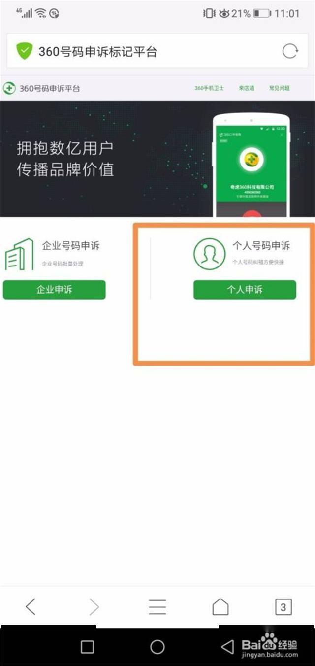打开之后,选择个人号码申诉或者企业号码申诉。