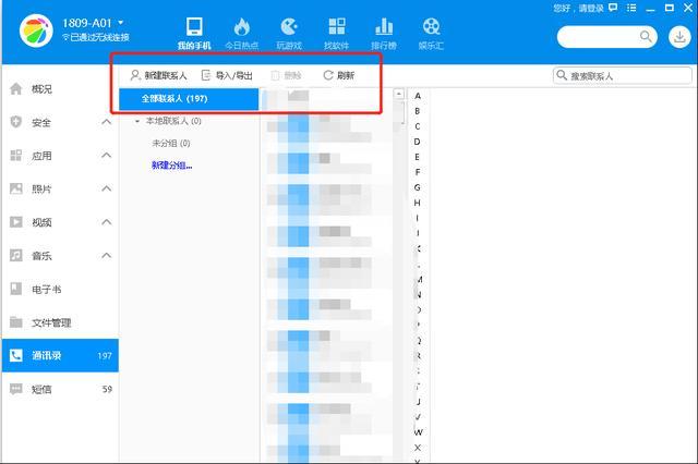 如果有电脑的话,可以在电脑上安装一些“手机助手”类的软件,这类软件都有“导入/导出”通讯录的共享,直接将旧手机的通讯录导出来,然后再导入新手机中即可。如下图: