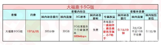 大福鹿卡只有一个档位,是中国联通携手鹿晗一起推出“福鹿相伴卡”之一,与畅爽冰激凌5G129元档相比少2元,拥有同量语音、流量,套外语音便宜0.05元,最大的区别主要是会员权益。