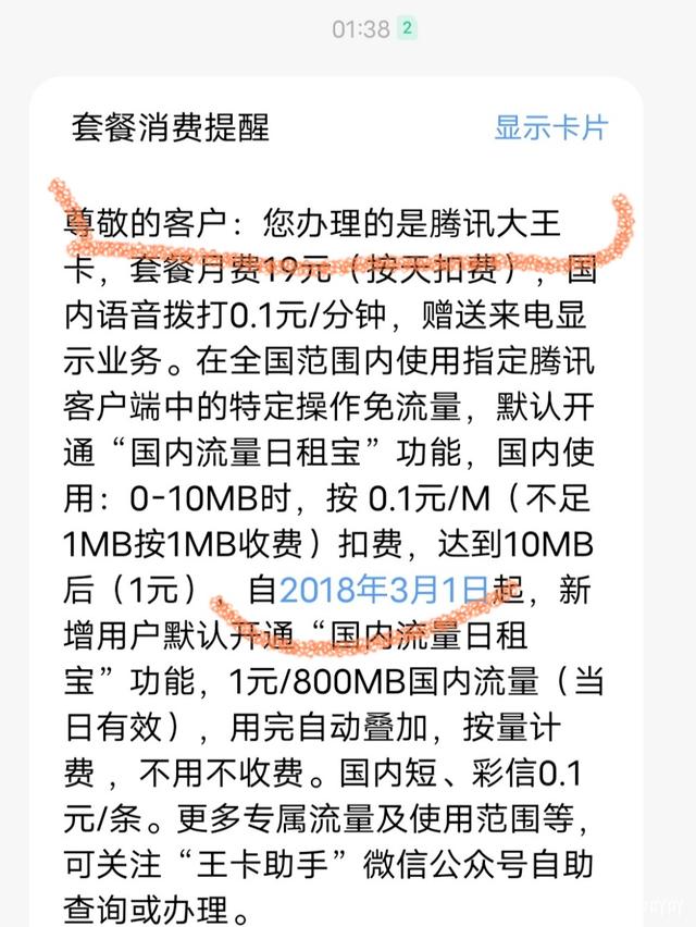 小编是于18年3月份的时候办的大王卡,可以清楚的看到保底消费是19元,周知,王卡流量在腾讯所有应用里面是免流的,腾讯应用以外流量1块钱800M,而小编之前基本上每个月消费都在40元左右!所以一直没注意到,只知道欠费就冲,一次冲个三五十的,也没去统计过,有时候连月账单也懒得去看一下。