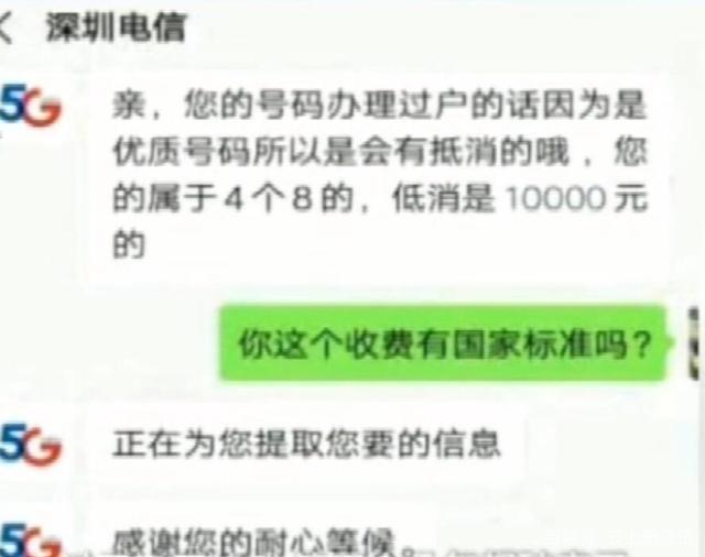 近日,深圳一男子投诉称,自己想把尾号8888的座机号过户到名下,可谁知,他竟被运营商告知,新用户要每月最低消费1万元。这对于一个老百姓来说,简直就是天价。试问谁每月就打打电话发发短信要用万元话费?