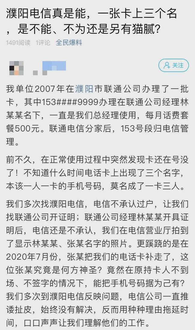 一卡三主!濮阳一男子用了13年的手机号咋成别人的了?一起来看看事件过程!2021-01-11关键词: 手机号 阅读(194)