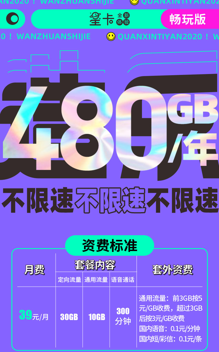2)通用流量:10GB国内通用流量(适用于流量不清零)