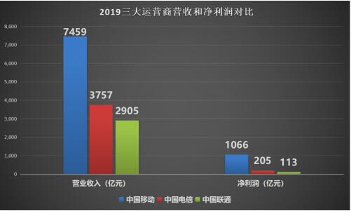 中国联通是国内三大电信服务商之一,中国的三大运营商相信大家都不陌生,分别为中国移动、中国电信、中国联通。在三大运营商中,中国联通排名最后,而且与前两者具有很大差距。2019年三大运营商的营业收入分别为7459亿元、3757亿元、2905亿元;净利润分别为1066亿元、205亿元、113亿元。中国联通的营业收入是中国移动的40%,净利润只占中国移动的10%。