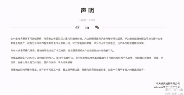 前两天小编写了一篇《1000亿出售了荣耀,才换来华为的自救路》,主要说了华为因何原因“割舍”掉旗下手机品牌荣耀,并表示出售后将不再持有新荣耀公司的任何股份。