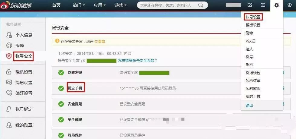 6、更改微博绑定