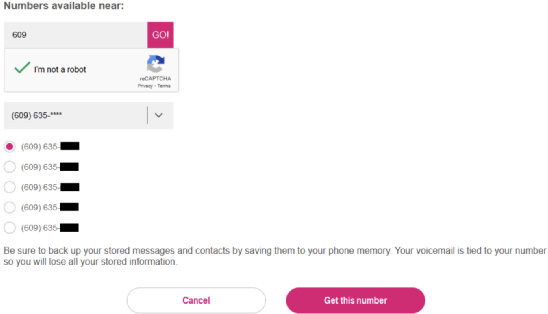 T-Mobile 和 Verizon 的预付费用户号码更改界面