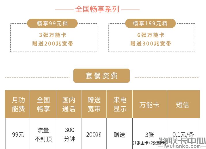 电信则有天翼畅享流量卡,分为99元和199元月租,都是不限流量限速,99元的有高速流量20G,199元的有高速流量40G,值得一提的是99元套餐的可以办理2张副卡,199元套餐的可以办理4张副卡!家里人多或者用两部手机的聚友可以考虑下~