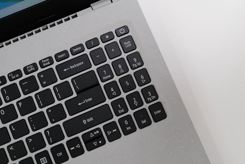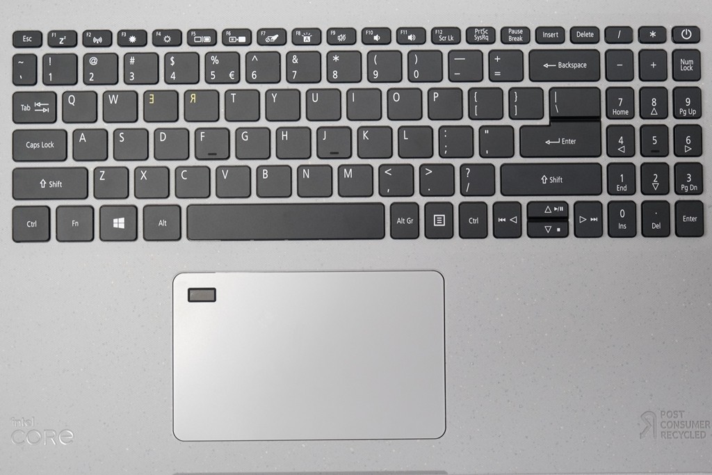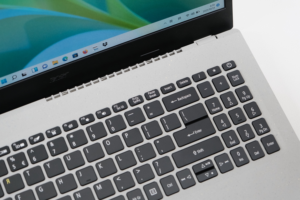看看图片,键帽这一块,大家发现了没有?Acer蜂鸟·未来环保版的R键和E键是反着来设计的,刚开始看是有点不习惯,但据说这是环保理念的寓意,提倡再循环的理念,看着还蛮有趣的。
