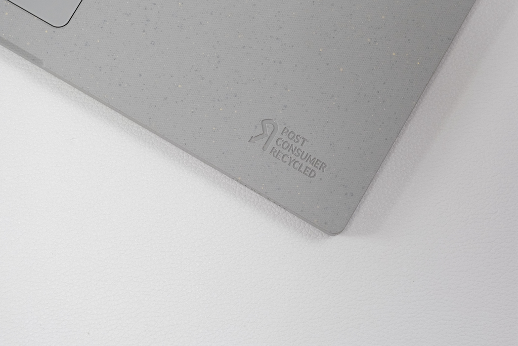 至于材质部分,蜂鸟 · 未来环保版在机身和屏幕边框使用的都是30%的PCR塑料、键帽使用50%的PCR塑料,而且面板使用的是这种超过99%的可回收面板材质,这是真正意义上的环保材质了。