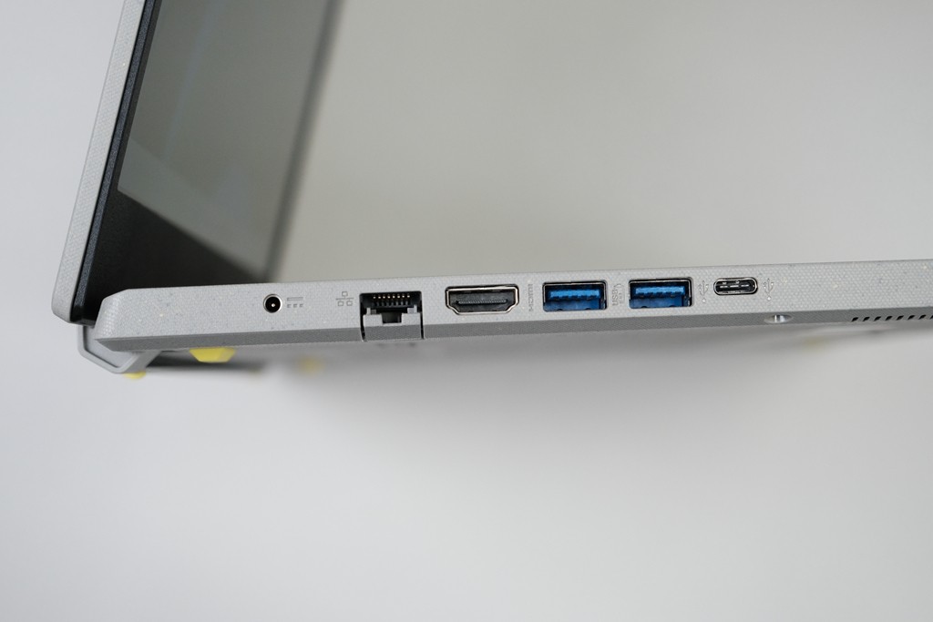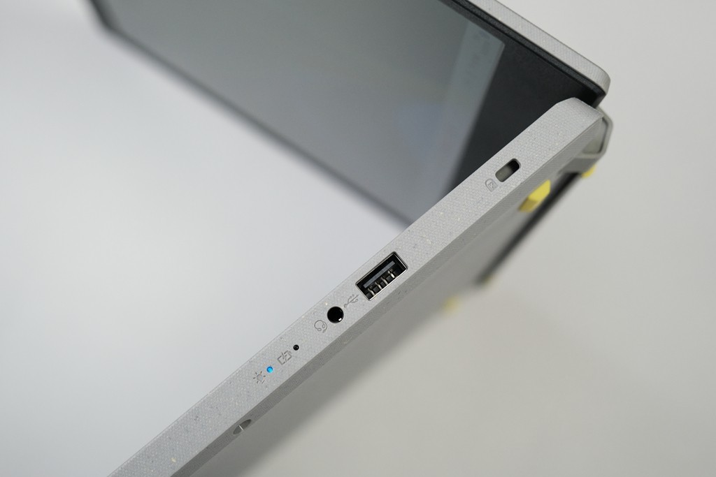 宏碁Vero 蜂鸟 · 未来 环保版由于采用PCR环保材质的外壳,所以轻盈度会比常规的金属用料更加轻盈一些,这点是其采用环保材质的一大优点。最关键的是,蜂鸟 · 未来 环保版的边缘打磨得十分轻薄,机身握持的纤薄感让人印象深刻。