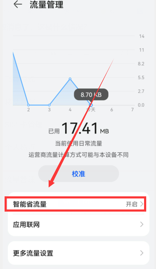 点击“智能省流量”,我们可以开启这个开关来节省流量。但是,我们不要限制微信接收消息。