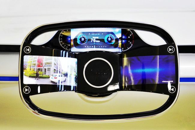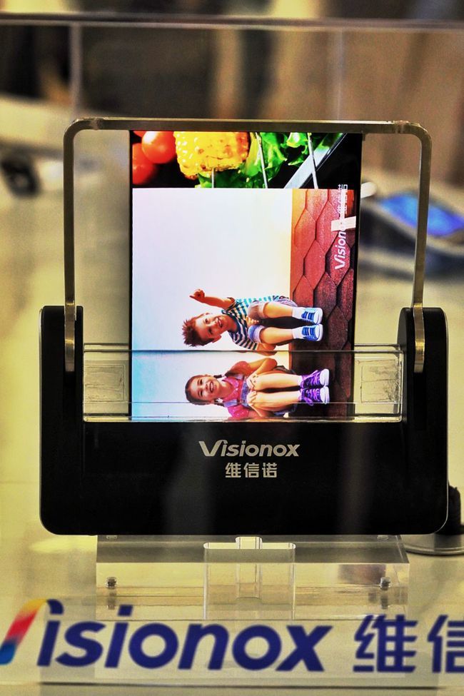 展厅内展出的各式元器件涵盖了诸多领域,有圆柱状全景可视化智能音箱、曲面移动会议秘书、智能生态管家、交互学习机……这些基于柔性AMOLED技术开发的产品,可弯曲、折叠,显示效果艳丽。