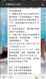 在后台发送“98元无限量套餐”,点击蓝色字体的“请点击这里快速了解和办理飞享不限量套餐98元”