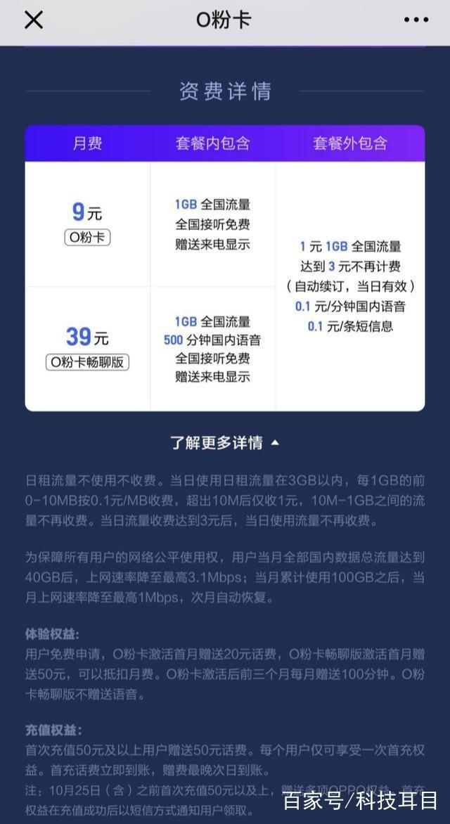 从上图我们可以看出O粉卡与米粉卡和星粉卡相比,大致相同。不同的地方在于套餐资费上O粉卡会贵出4元/月,但相应的套餐内也多了一个1GB的流量包,所以如果你每个月使用的流量可以控制在1GB内,并且对打电话没有需求的话,最低9元就可以满足你的日常需求了。但是如果1GB的流量包无法满足你一个月的流量需求,那么相对来说米粉卡或者星粉卡会比较划算。