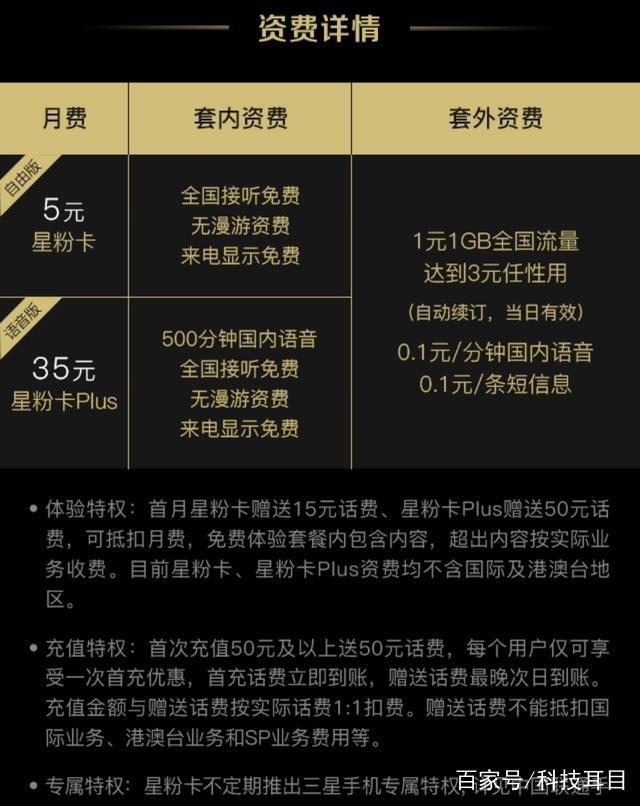 从上图我们可以看出星粉卡的套餐资费与米粉卡基本一致,唯一不同的就是免流量应用的范围。所以大家可以根据自己使用的手机类型,或者日常生活中使用应用类型的频率,来做一个选择。