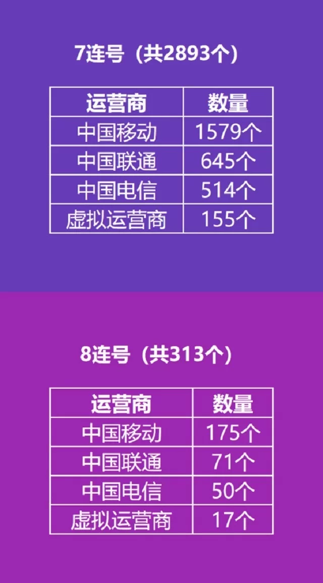 那么怎样的手机号可以称之为“靓号”呢,一般来说,“靓号”分为七个档位: