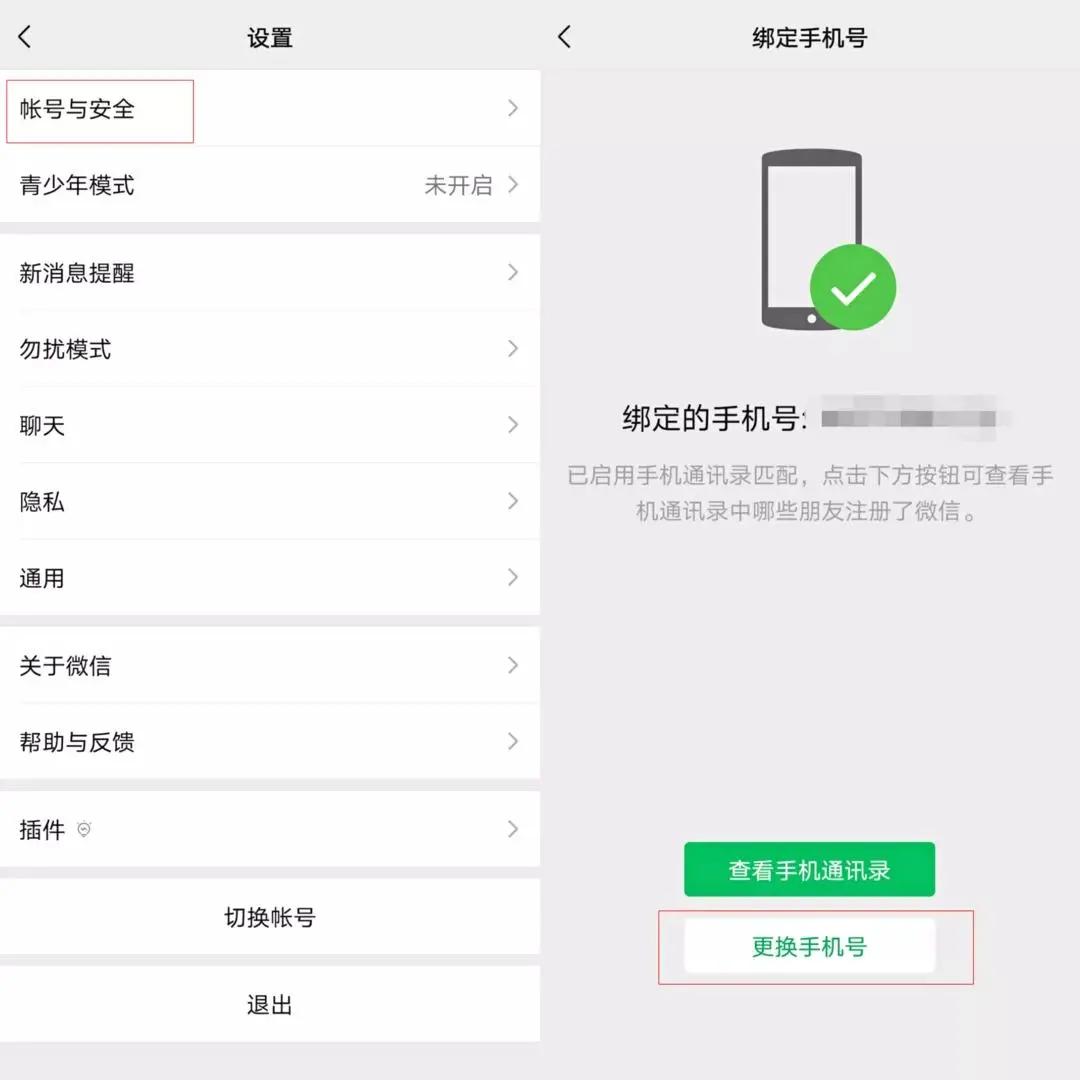 更换的方式很简单,进入微信【设置】-【账号与安全】-【手机号】-【更换手机号】,直接输入新绑定的手机号码,填写验证码就可以更换绑定了。
