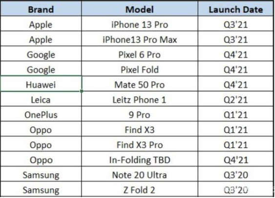 Display Supply Chain Consultants (DSCC) 高级总监 David Naranjo 最近分享了一份采用 LTPO OLED 显示屏的智能手机清单,大部分型号的手机预计将于今年推出。尽管有报道称华为在 2021 年没有计划更新华为 Mate 系列,但来自这位高级总监 Naranjo 的名单中就包括“华为 Mate 50 Pro”。