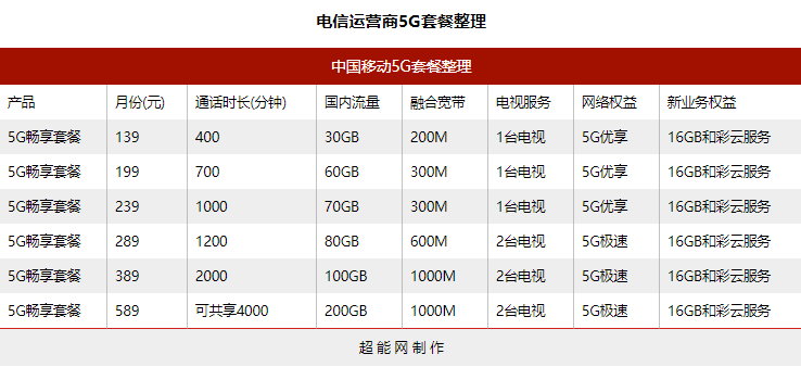 除了表格呈现的内容之外,根据中国移动营业厅工作人员的介绍,他们还提供一个月费为119元的5G套餐,20GB套餐内流量,可以申报宽带,但是每个月要额外付费10元起,取决于办理了多少M的宽带。而其他套餐都是包含了宽带服务以及高清电视服务的。当然,中国移动是否会为你提供宽带服务取决于你所报装的区域是否覆盖有他们的宽带建设。如果有的话,那么他们就会以免费送的方式给到5G套餐用户相应的宽带;如果没有覆盖到你所在的区域,那么就不能申报宽带。