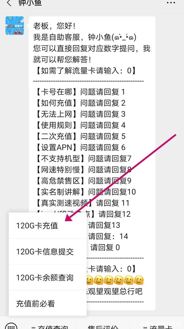 进入公共号有充值查询、有售后服务。充值中心提供120G充值链接。