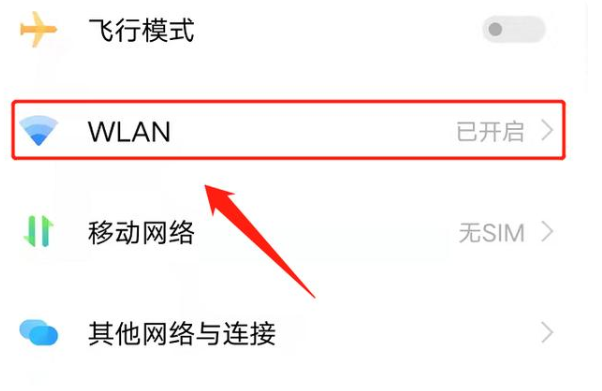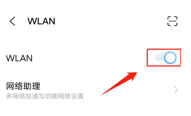找到“WLAN”选项以后,点击它,进入WLAN的界面,将其开启。如下图:
