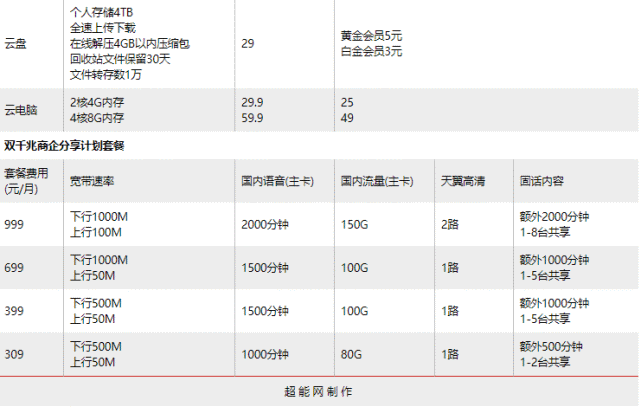 上为个人版,下为家庭版,截图自中国移动官网