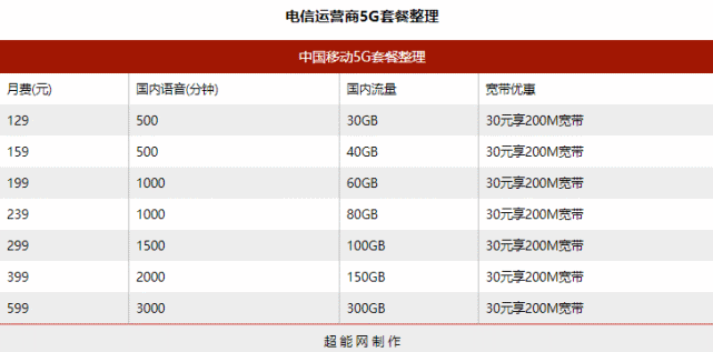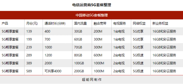 中国移动5G套餐