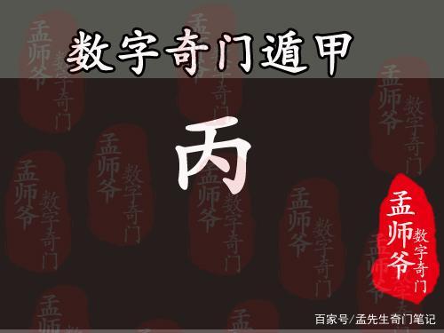 丙为三奇之一,代表火,代表出乱子,出问题,出状况。 丙也是希望达成的意思,表示强烈的愿望,又为权威,权柄,是一种比较混乱达成。 丙在测婚姻时为男性第三者,丙是男人,出乱子的男人,老公之外的男人,圆形的脸,丙也代表少男,同性恋。 丙为太阳,红花,玫瑰花,窗子,电炉子,锅炉,高高的山岗上,美丽的鲜艳的花,打架,发炎,肿胀,流鼻血,流血。出血,输血,血液,炮火,烟火,火柴,打火机,燃烧,烧烤的食物,烧伤,烫伤,太阳能,发电机。 丙是强烈的,希望中出乱子。 丙代表战争前的准备,小肠,信号灯,手电筒,眼镜,欲望之火,脾气大,急躁,红嘴唇,红布,红纸,红色的字,红色交通灯。 丙在测性格时,代表威严,性格急躁,脾气不好,丙为圆脸之人,红色的面孔。 丙在测病时,代表流血,发炎,肿胀,血液。 丙在测环境时,为各种光,或是与火有关的事物。 丙在断事业的时候代表男人有干劲,有希望,最后能达成理想。 丙在人体中代表心脏,血液。 丙在测风水时,断环境周围事物的时候以光和火,或是红色而断。