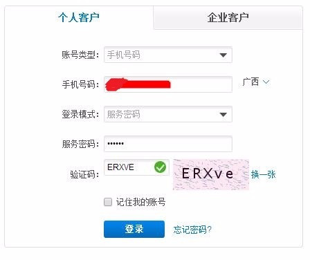 ①使用手机号码和服务密码登陆移动网上营业厅;