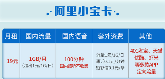2.阿里19元小宝卡套餐