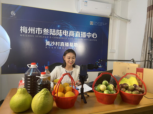 2019年,黄沙镇与梅州市叁六六贸易有限公司达成电商合作协议,设立了直播中心,流转土地294亩。通过发展特色水果农产品种植、加工、仓储、物流及销售,实现规模化种植、产业化加工、市场化销售,并延伸发展综合特色乡村旅游、休闲养生、田园体验,截至目前已为50户农户解决了就业问题,平均每人每月直接增收3000元。