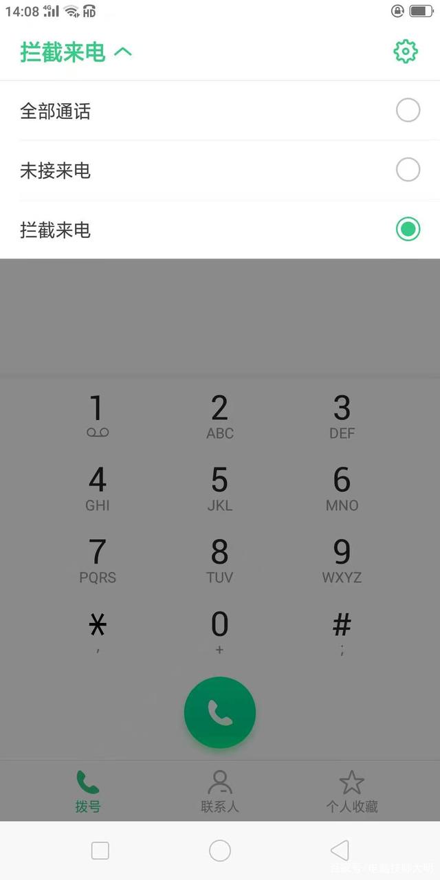 点击手机桌面左下角的”拨号“选项,接着点击”全部通话“选项选择”拦截来电“就可以查到”黑名单电话号码“。