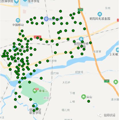 信阳北站、信阳职业技术学院、新七大道以南,二十四大街、宁西铁路京广铁路以西,宝石山庄、建邺城以北,南湾湖以东;覆盖区域如上图: