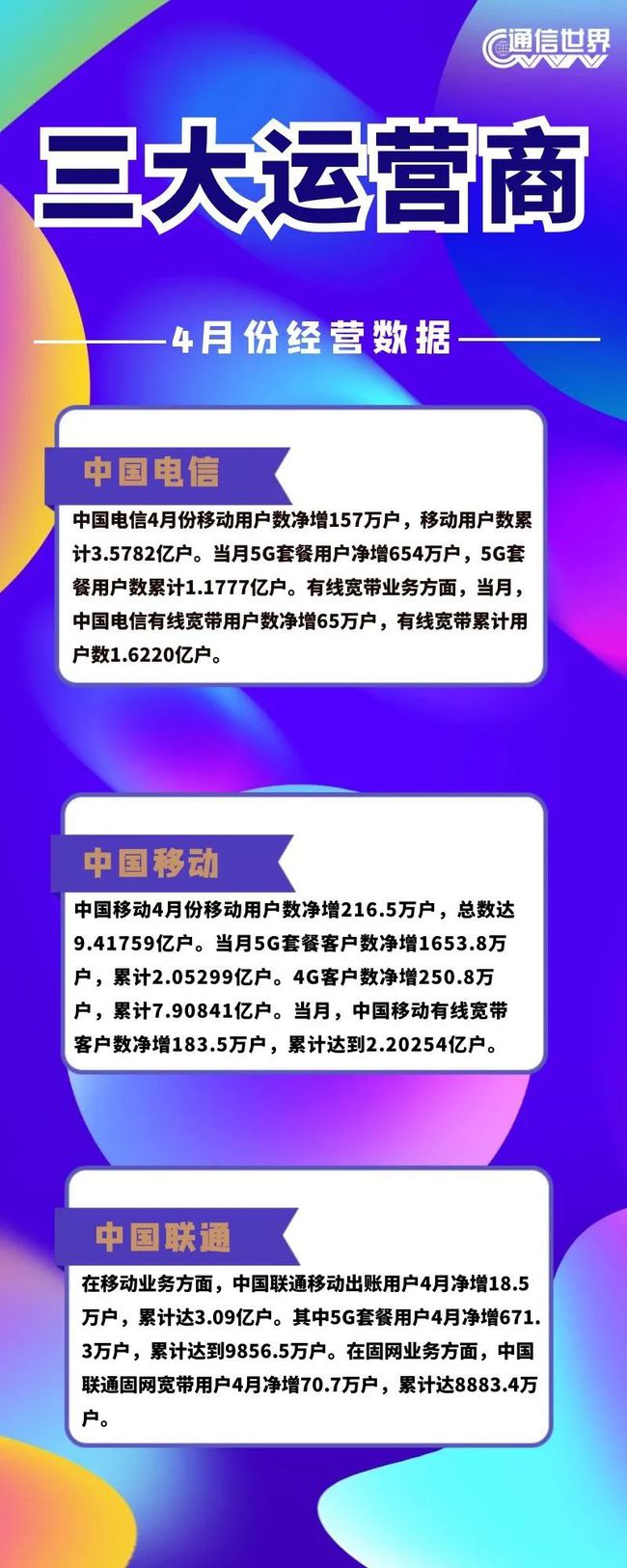 5G用户规模破4亿!一图看懂运营商4月运营数据,这其中有你吗?